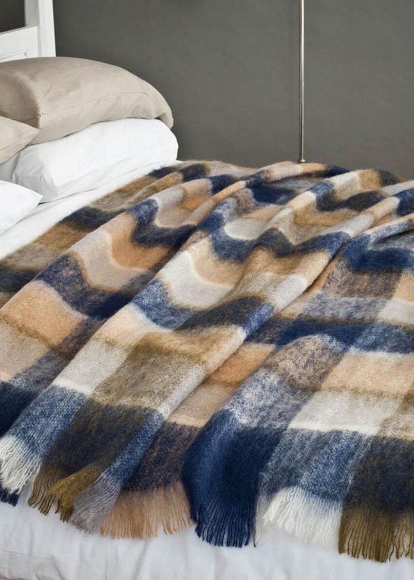 karierte Mohairdecke von Avoca aus 70% Mohair / 30% Schurwolle