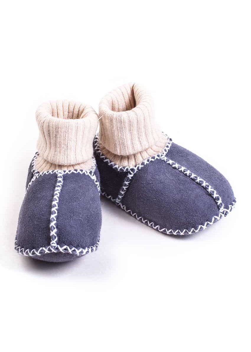 Babyschuh Lammfell mit Strick, Blau-grau-anthrazit