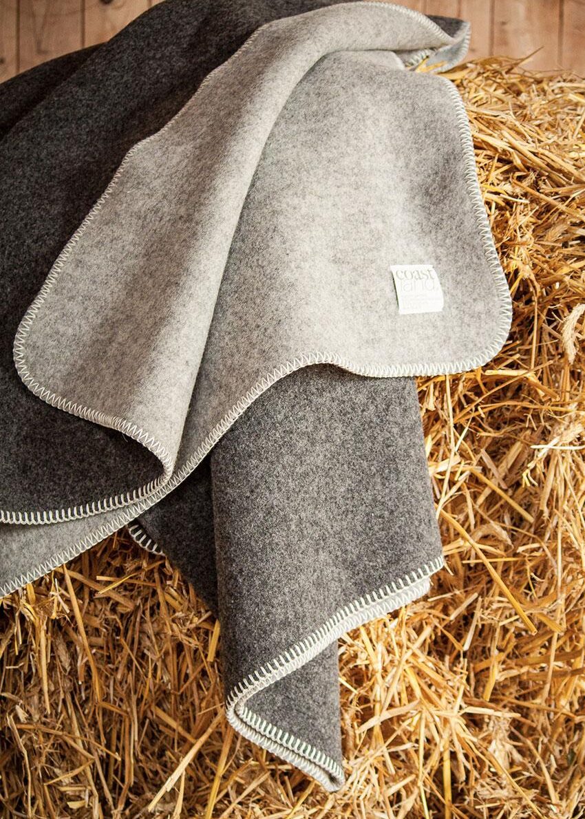 Die Decke aus heimischer Wolle. Dazu haben wir die Wolle deutscher Merinoschafe zu einem robusten und strapazierfähigen Gewebe gearbeitet. Etwas fester im Griff, aber dennoch angenehm auf der Haut. Ausgestattet mit zwei besten Seiten; hell-dunkel-meliert. Ein starkes Statement für Mensch und Tier von hier – regional, nachhaltig und außergewöhnlich.