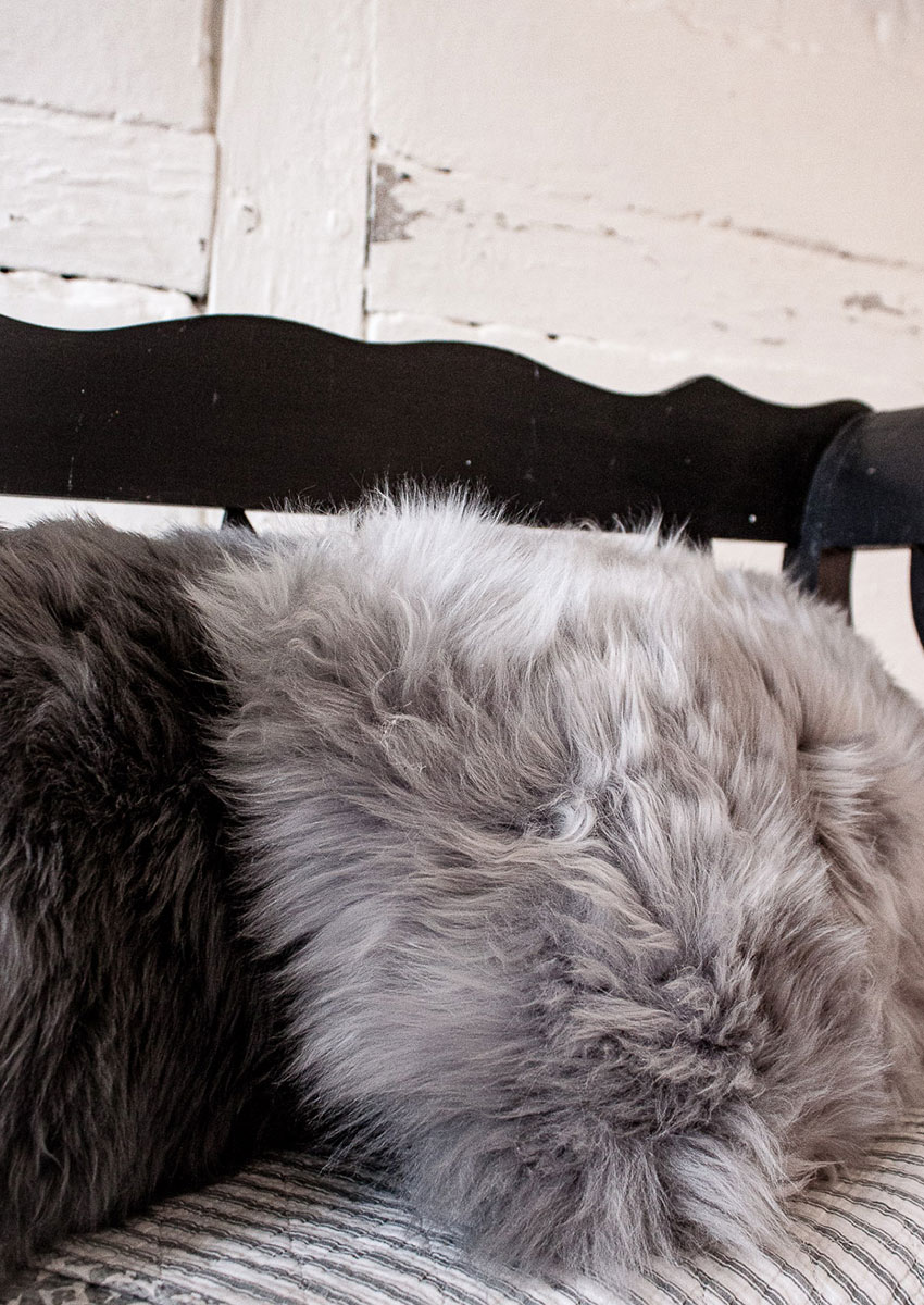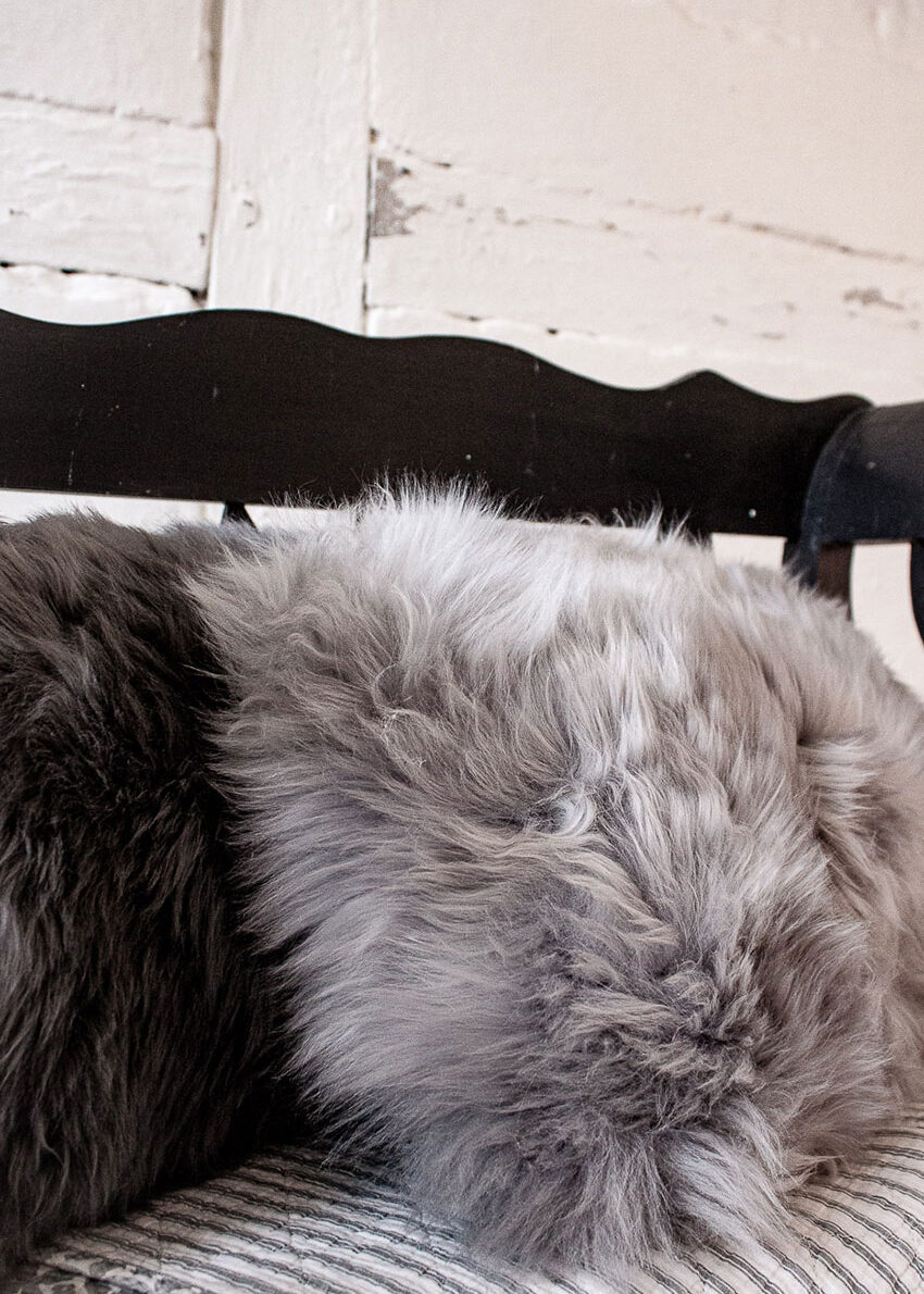 Lammfellkissen lang, grau