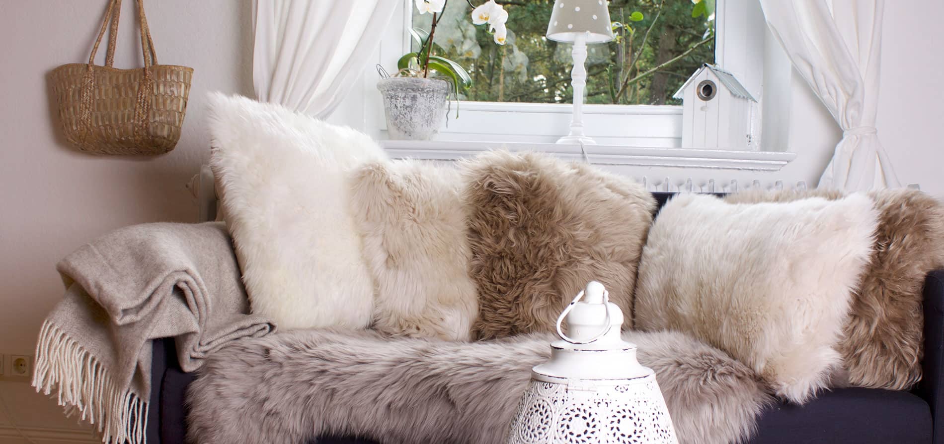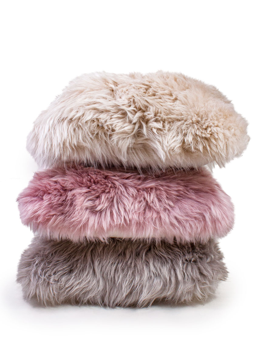 Kuschelige Lammfell-Kissen für Sofa oder Sessel finden Sie in malve, grau, leinen, taupe und weiß in unserem Onlineshop. Die Lammfell-Kissen kommen mit einem Syntetikfaser-Inlet und haben einen Reißverschluß. Die Rückseite des Lammfell-Kissens ist aus einem kuscheligen Microfaserstoff.