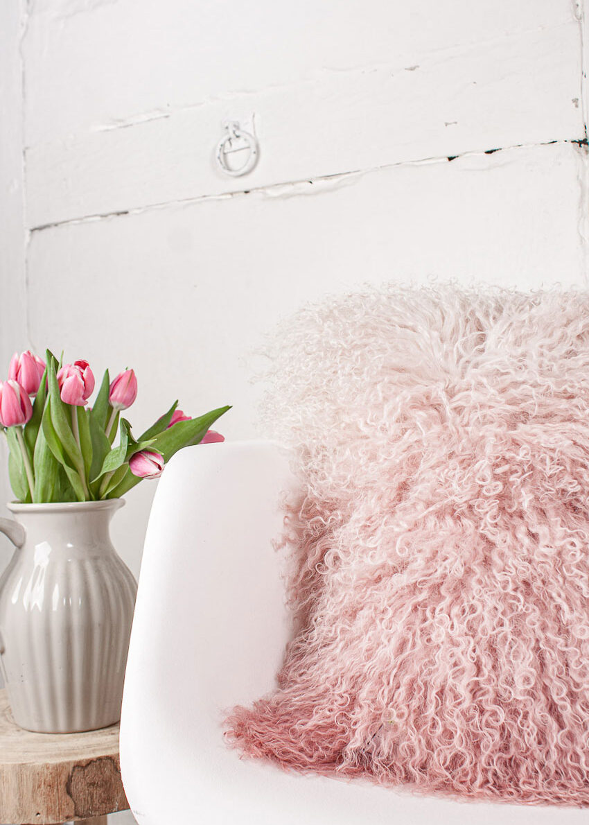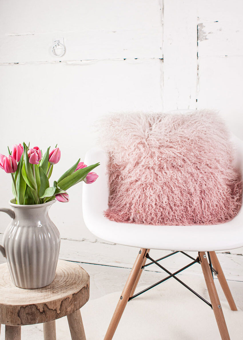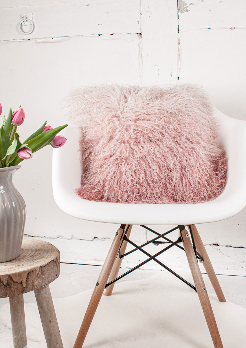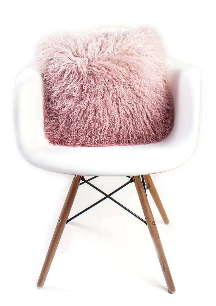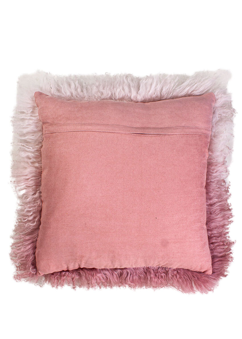 Tibet-Lammfell-Kissen Dip dyed Ombre, rosa