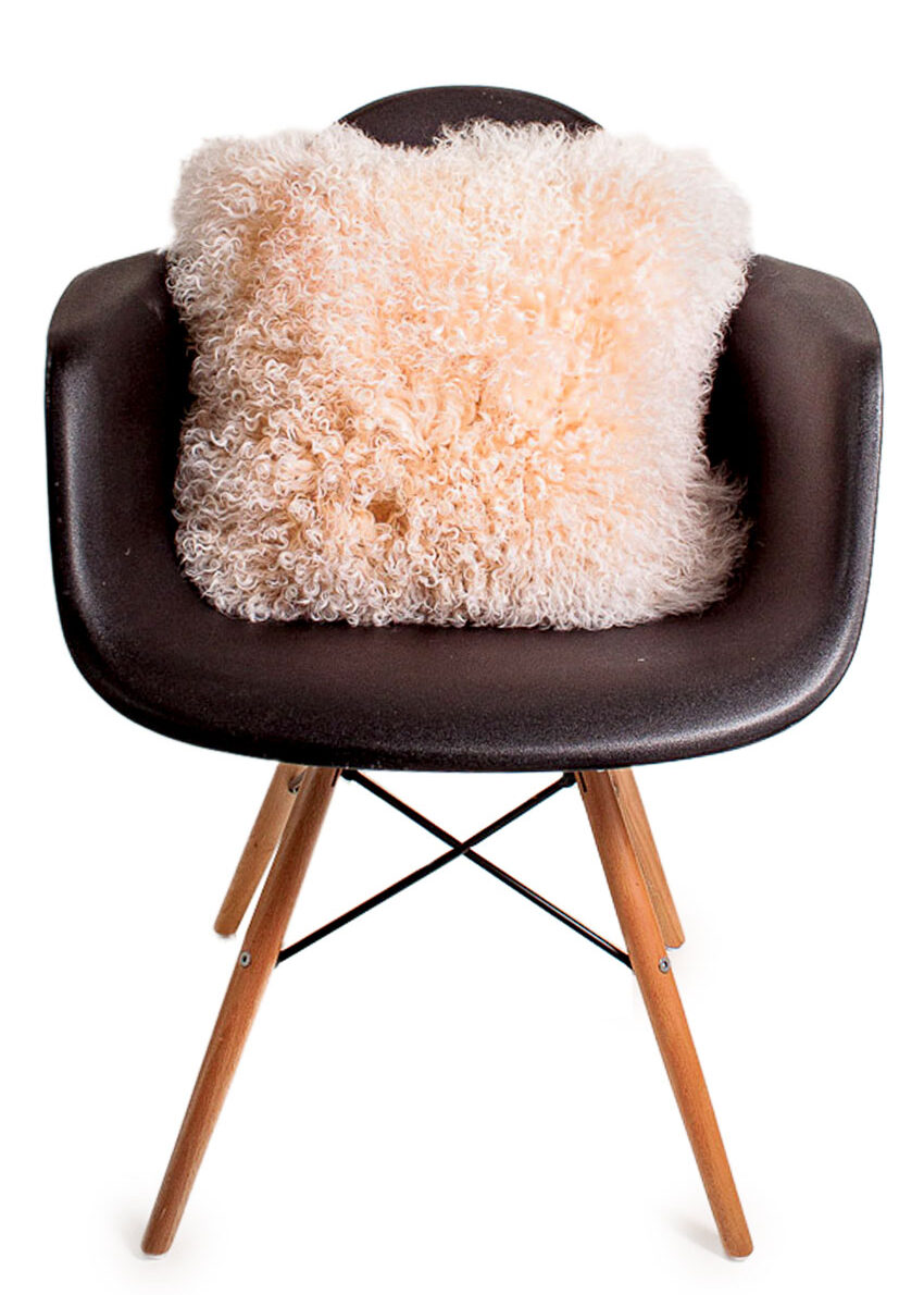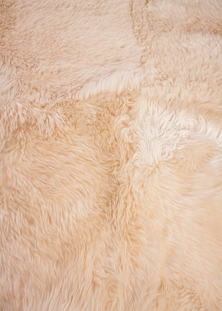 Champagnerfarbendes Unterfell mit weißen Spitzen – die sunrise Färbung macht die Farbe des Kissens schön freundlich-weich.
